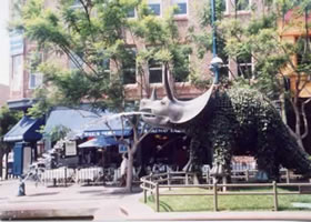 お昼時だったので、ガイドさんにここで、おろされました。 最初、買い物をするところかと思ったのですが。違いました。 サンタモニカ・プレイス。上のビーチから、車で5分も離れていません。 中は立派な、フードコート。外が熱かったので、かなり涼しくてほっとしました。