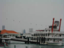 ボケてますが。セントーサ島から、本島(シンガポール)へむかう、船着場です。このあたり一帯は、コロニアル様式になっていて、アジアというより、ヨーロッパっぽい景色が(最近、作り変えたらしいですが)拝めます。ま、作り物なので、かなり安っぽい感じはあるのですが。