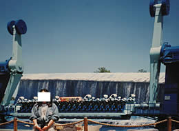 えっ? と思った瞬間。コアラのフンが、私の足下に、ぱたぱたぱたっ、と落ちてきた!しまった。これ(おしりをたたくこと)、うんちしていいよ、の、合図だったか。でも、そのまま私が、騒がず、動かずにいたので、無事撮影終了。撮影用のコアラは、どうやら調教(?)もされているようです。写真は、園内のジェットコースター。ほかに、2,3,似たようなジェットコースターがあり、どれも乗ってみたんですが、久しぶりだったのと、後ろにうつっている、パイレーツ系のものは、初めて乗ったので、結構怖かったですね。乗った記念に。動物園と、ジェットコースターが両方あるので、両方好きな私としては、満喫できたところ。ここのカフェで、初めて、現地通貨を使いました。コーヒーはやや、高かった。