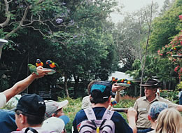 カランビンへ。自由行動ではなく、ツアーとして組み込まれていたもの。ここは、時間になると放し飼いになっていたロリキートたちが、四方八方から飛んできて、皆が持っている餌をつつくという、ロリキート・ショー。かなり有名なものみたいだけど、やってるの、8割が子供でした。。ちょっと恥ずかしかった。でも、カラフルなロリキートらが、自分の持っている餌に来ると、嬉しいんですよね。 私は、なぜか、頭にまで乗っかられてしまいました。