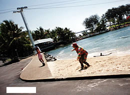 ゴールドコーストの宿泊ホテル、シェラトン・ミラ−ジュ。ここは、間際まで違うホテルを指定しておいたのですが、ナゼかパンフをみたら、ここのホテルになっていて。困りました。自由行動が多かったので、なるべく立地条件の良い所に泊まりたかった。なんでこんなところに? と思って、行ってホテルを見たら。いやこれが、ものすごいホテルだった!今までいろんなホテルに泊まりましたが、ラスベガスのルクソールの次に、広いホテルでした。外は、部屋の窓から、水平線まで見渡せる、海が、一望できる!巨大なプールがあり、ホテルの内部からの夜景も、素敵でした。ハワイや東南アジアなどのリゾートホテル系。シェラトン、見直しました(私の知ってるのは、ディズニ−ランド)。