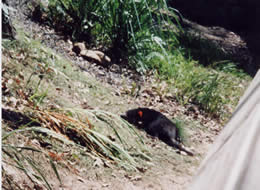 こちらは、ウォンバット。これもわからなーい。かなり臆病なのか、夜行性なのか(?)。このあたりは、南半球でしかみられない、独特な動物があるゲージでした。檻のようなものはあるのですが、全部、塀のようになっていて、撮影するには、こちらがかなり身を乗り出さないと、難しい(動物のところは、あまり動かないのか、金網などはない)。加えて、鬱蒼とした木や草があり、その奥へと逃げ込んでいるような感じでした。これ、かなり望遠で撮影しています。実際には、こんなに近くには見えません。