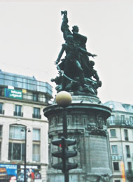 フランスへ。ここはスイスからリヨンまで、ヨーロッパの新幹線、TGVに乗りました。TGVは乗ってみたい電車だったので、嬉しくなりました。内装は、ちょっと豪華なバスをひろげてみました、という感じのつくり。 床にはじゅうたん、窓はあかなかったけど、かなり大きなもので、席は、当時、日本では珍しい、車両の真ん中から、席が逆を向いている(進行方向とは逆)タイプのものでした。 さらに、各席も自由にまわすことが出来て、乗客が勝手に席をボックス席にすることも可能でした。 おもしろーい、と、私はしばらく逆向きで座っていましたが。なんか居心地が悪くなってきて、もとの進行方向側に戻しました。スイスからの風景は、非常にのどかな田園風景。途中、牛をみたりして、スイスとフランスの国境を越え、穏やかな丘陵地帯を満喫。あんまりのどかな風景が続くので、途中で、寝ました。写真は、オペラ座周辺の銅像(だったはず)。