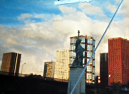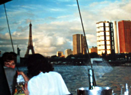 バトー・ムーシュからみた、自由の女神。当時の私は、まだ学生で、歴史を学んでいる真っ最中でした。コレを見た瞬間、なぜ自由の女神がここにあるのか、判らず、周りの大人に聞いて、初めて知りました。線が入っているように見えますが、バトー・ムーシュの、ガラスの継ぎ目です。