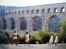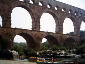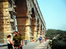 結構、高い橋の上に、柵などが一切ないので、へりによると、落ちそうでこわーい! この水道橋、下はセーヌ川だったのですが、なにやら気持ちよさそうだなあ。夏場で、結構日差しが強かったので、泳ぎたい気分に。 実際、白人など、外国人の方々は、みな半そで・タンクトップ・半ズボン。ここは、観光客であふれていました。