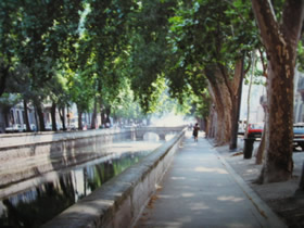 エクス・アン・プロバンスの中でも、ミラボー通り(画家の名前がついた通りが、ほかにやまほどある。そのひとつ)は、10階ほどの鉄筋コンクリートのビルが道の左右に立ち並び、これが南仏? という雰囲気が。
