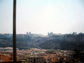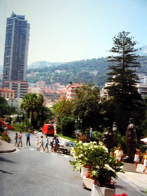 コートダジュールで、泳ぐ! これ、今回の旅の目的のひとつでした。水着を持ってきていて、事前に、どうすれば泳げるのか、チェック。ホテルを出て、歩いて10分ほどの海岸へ。プロムナード・デ・ザングレ。少し右手奥のほうに目をやると。おおっ、あれなるピンクのドームは、ホテル・ネグレスコ! これ、とまれたりしないのかなあ、無理だろうなあ、と当時は思っていたのですが。