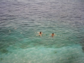 多少、サンスクリーンは塗っていましたが、そういうのが水に触れて、落ちたのとは違い、なんだろう、でも、日本の海のように、入った瞬間つめた−い、という急激な冷えみたいなものは、なかった。
