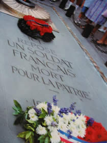 最初、物々しい儀式があり、遠くから見つめていまして。 近づいてみると、フランス語で「UN SOLDAT FRANCAIS」の文字が。 カンの言い方、フランス語を習っている方はすぐ判るかと思いますが、凱旋門ってつまり。 戦争で亡くなった人のための、巨大な慰霊碑、なんですね。