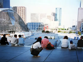 このあたりはビジネス街だと聞いていましたが、スーツを着た人があまりいなかった。図書館などがあったようで、遊びに来た人でしょうか。