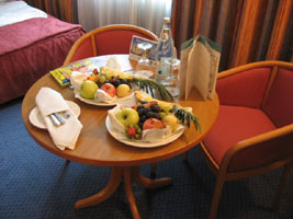 ウェルカムフルーツのみの、夕食でしたが、その前に結構、たっぷりめの機内食が出たので。こんなのでも、おなかいっぱい。