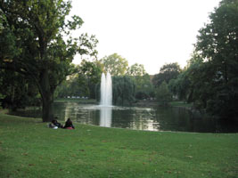 ホテルの目の前には、比較的大きな庭園があり、夕方だったこともあり、若いカップルや親子、私たちと同じような外国人観光客の姿、と、庭園には、噴水があり、鳥がたくさんいました。